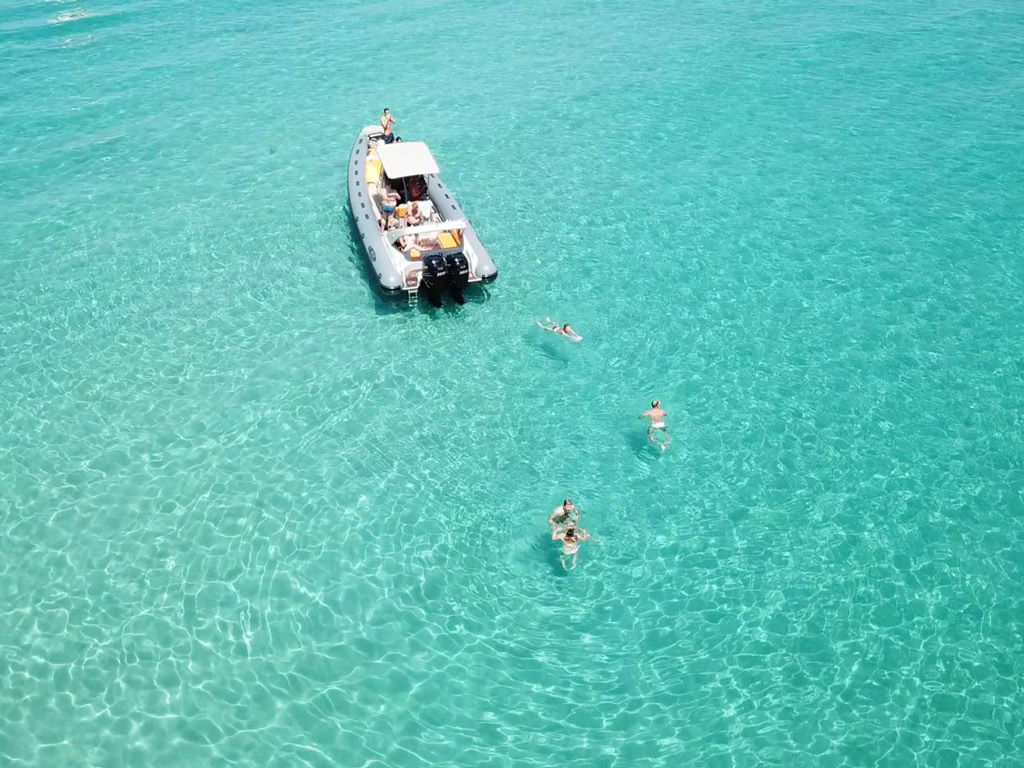 Excursion de groupe en bateau partagé, avec de nombreuses pauses pour se baigner et faire du snorkeling dans des endroits inaccessibles par soi-même.